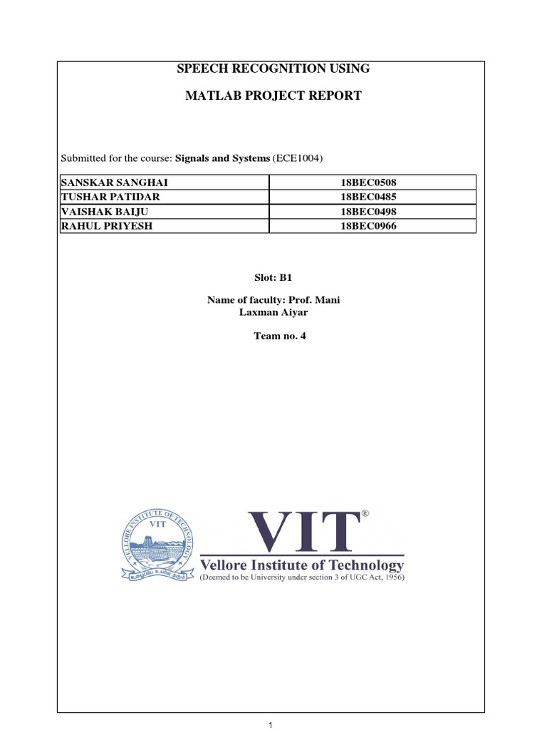 us in writing this assignment. We also thank the VIT UNIVERSITY and Dean of SENSE