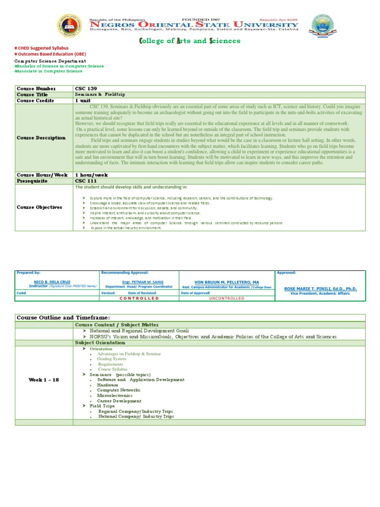 NORSU’s Vision and MissionGoals, Objectives and Academic Policies of the College of Arts and Sciences