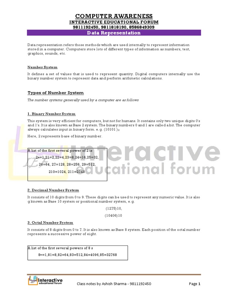 Class notes by Ashish Sharma - 9811192450 Page 1