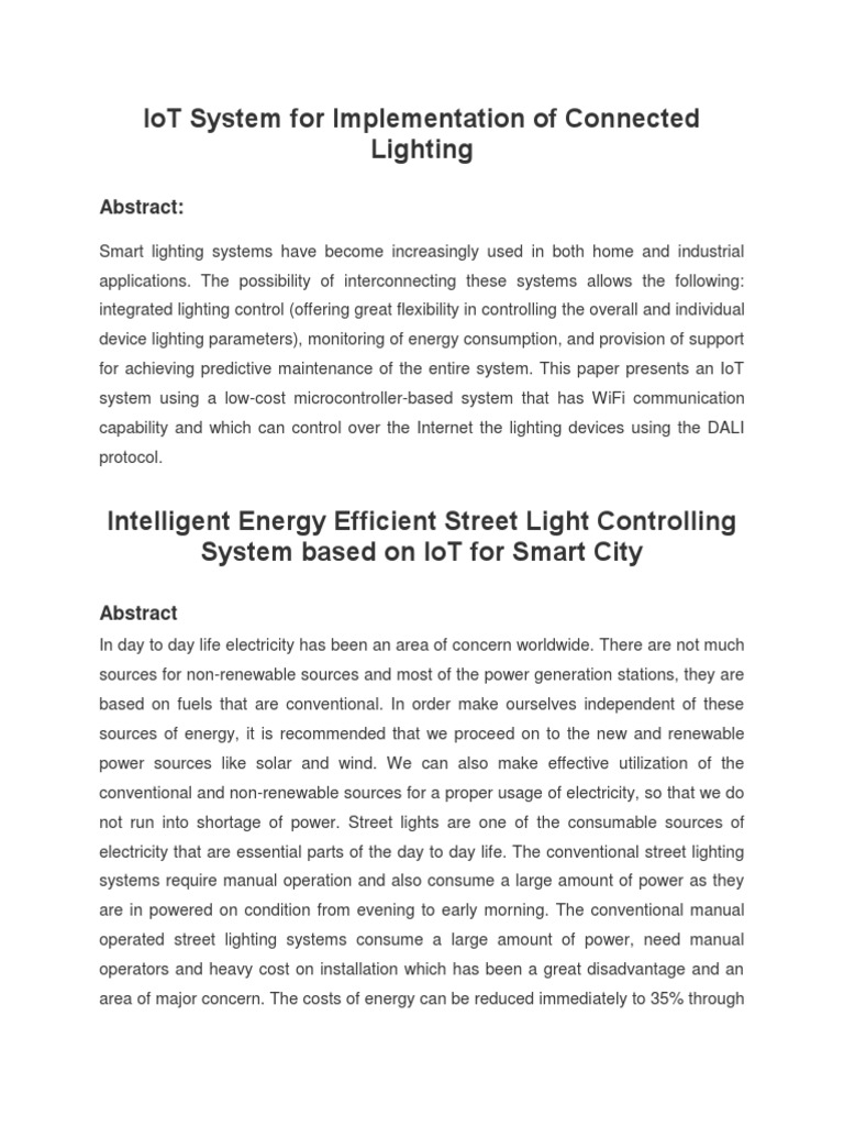 a Smart Lighting System which aims at curbing this problem using IOT. Internet of Things