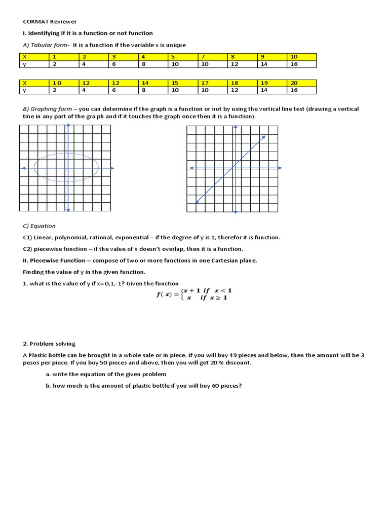 C2) piecewise function – if the value of x doesn’t overlap, then it is a function.