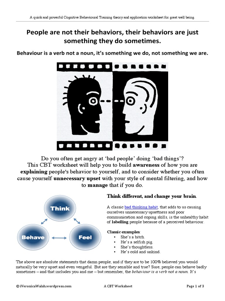 A quick and powerful Cognitive Behavioural Training theory and application worksheet for great well being.