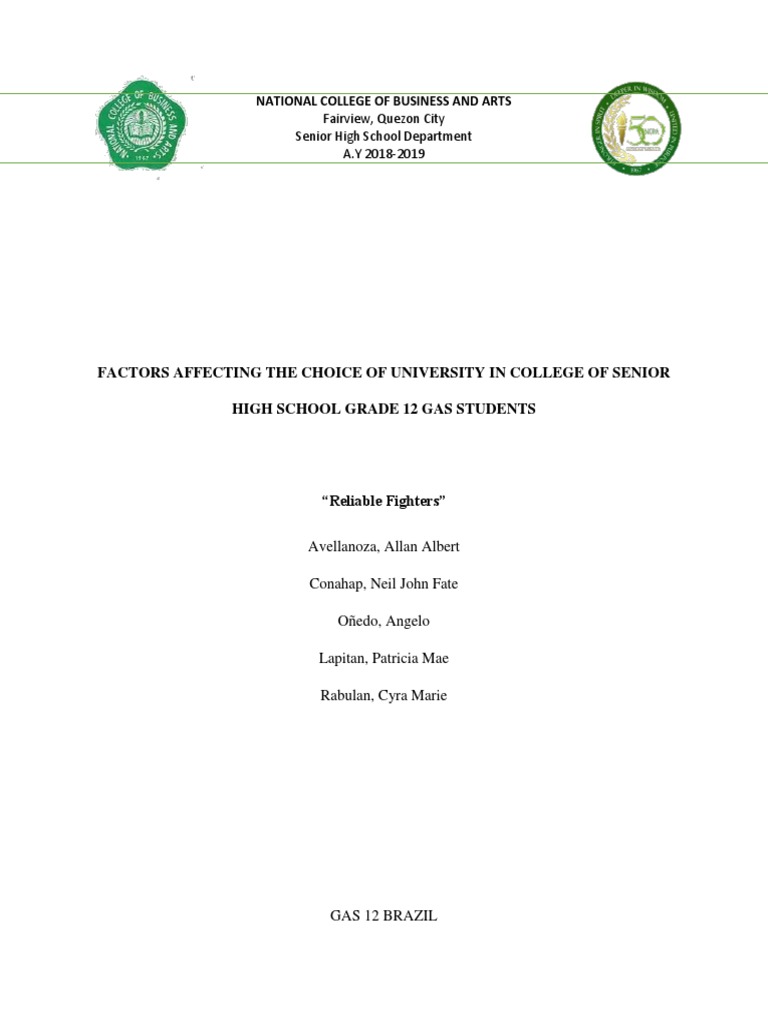 Factors Affecting The Choice of University in College of Senior High School Grade 12 Gas Students