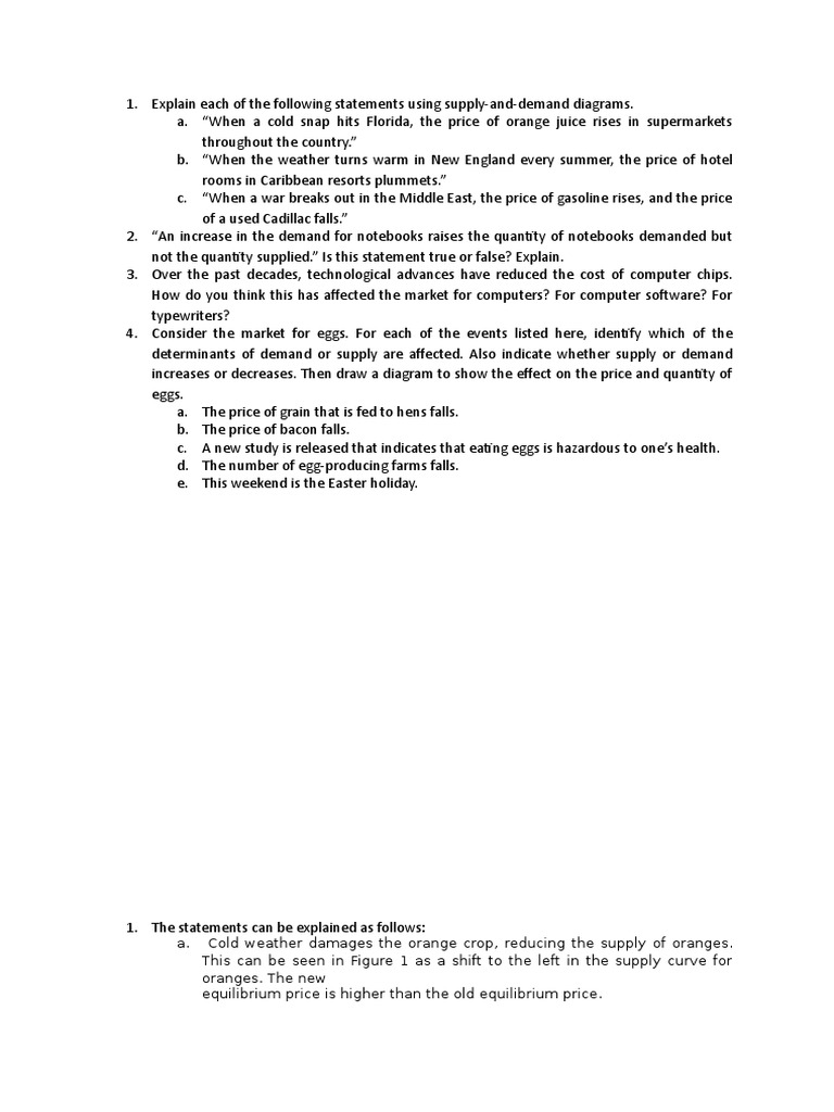 1. Explain each of the following statements using supply-and-demand diagrams.