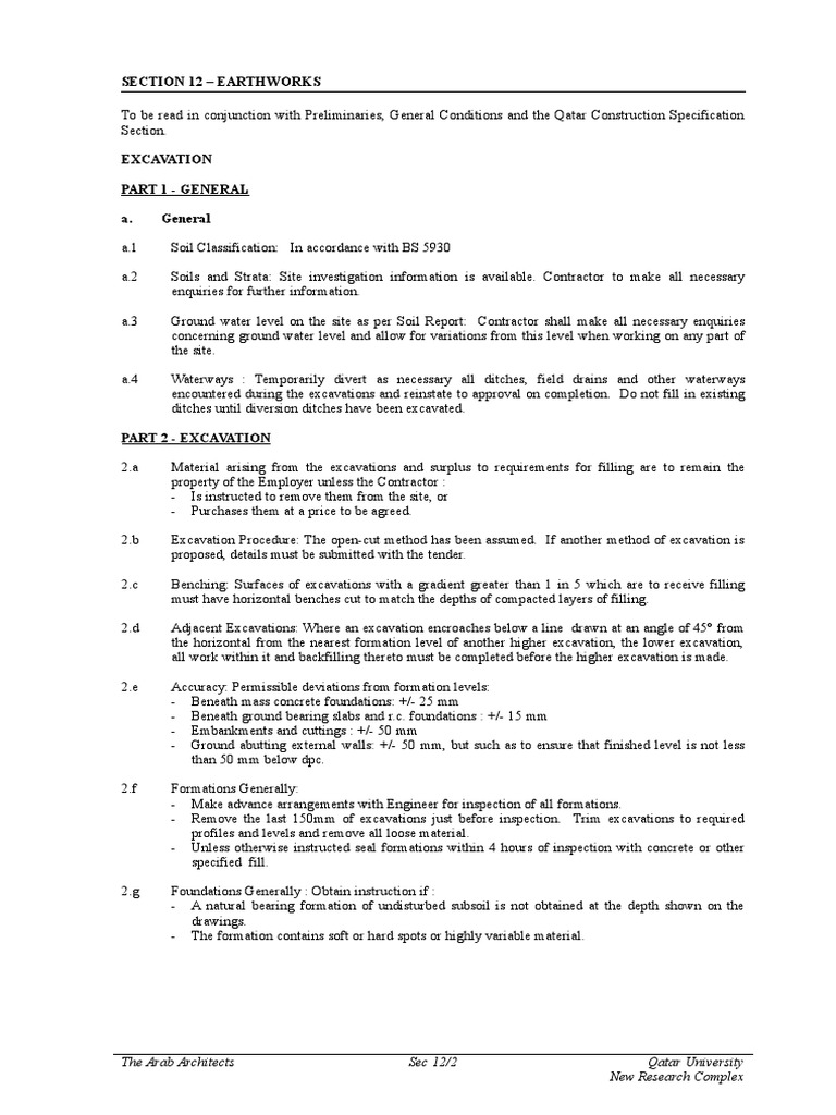 To be read in conjunction with Preliminaries, General Conditions and the Qatar Construction Specification