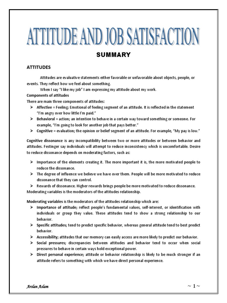 limited number of work related attitudes. Job attitudes tap positive or negative evaluation that