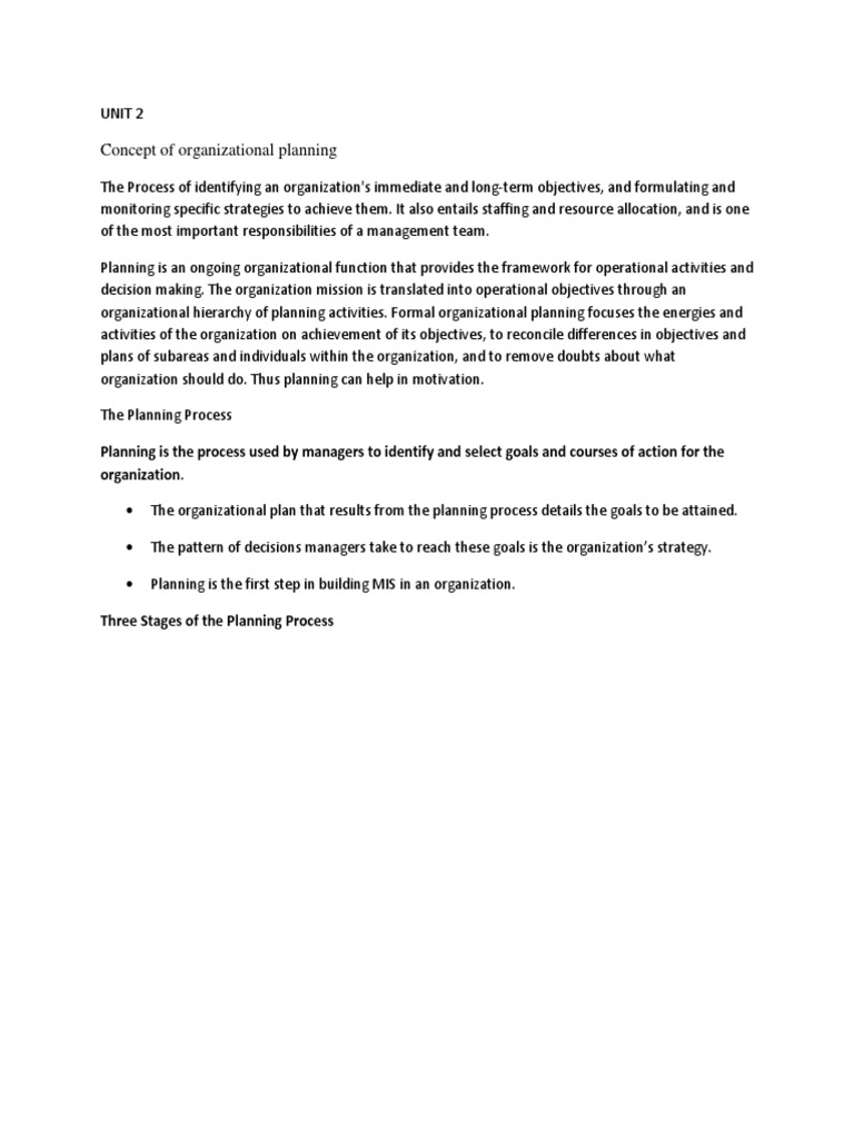 organizational hierarchy of planning activities. Formal organizational planning focuses the energies and