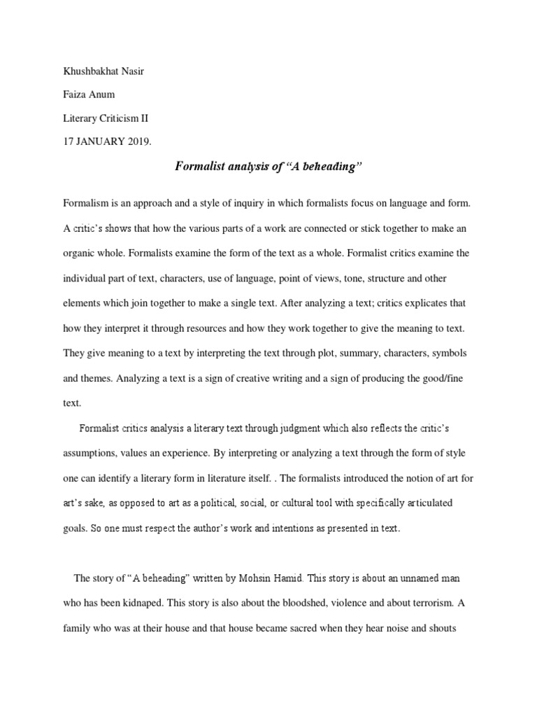 organic whole. Formalists examine the form of the text as a whole. Formalist critics examine the