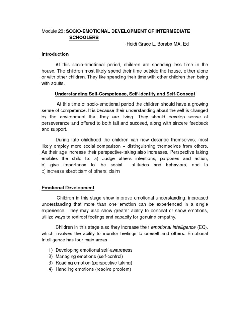 Module 26: SOCIO-EMOTIONAL DEVELOPMENT OF INTERMEDIATE