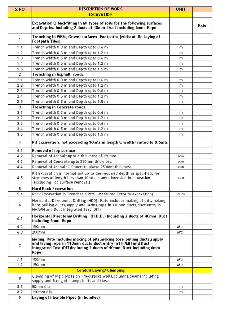 3.5 Trench width 0.5 m and Depth upto 1.5 m m