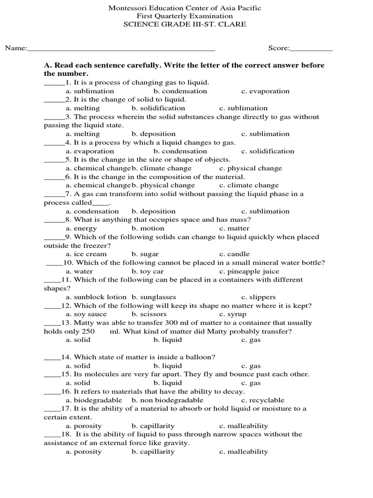____13. Matty was able to transfer 300 ml of matter to a container that usually