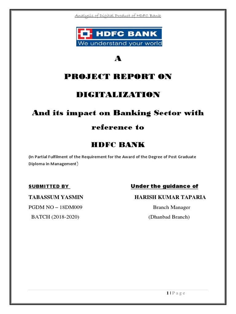 Digitalization and it impact on Banking sector with reference to HDFC Bank.