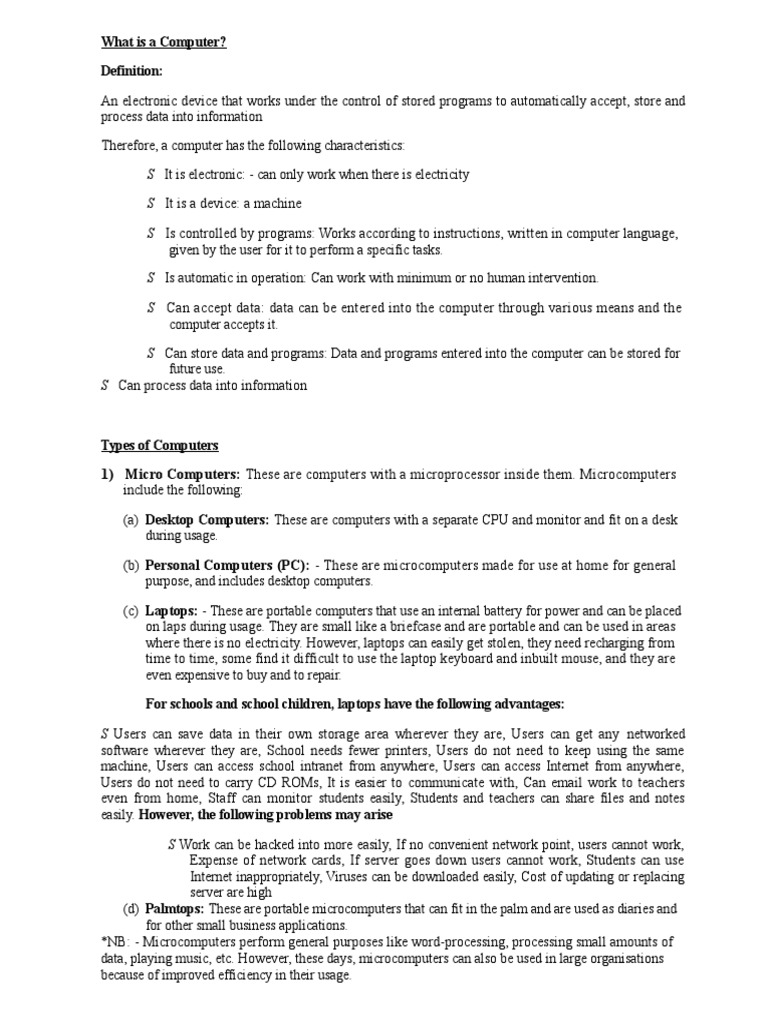 *NB: - Microcomputers perform general purposes like word-processing, processing small amounts of