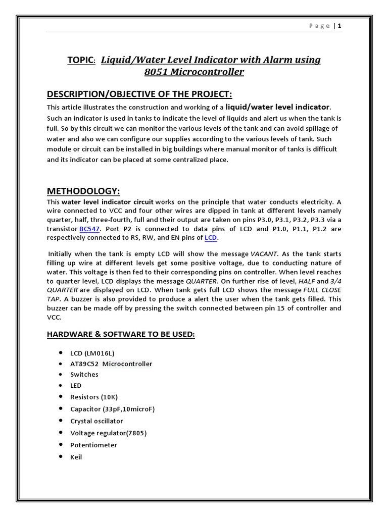 TOPIC: Liquid/Water Level Indicator with Alarm using