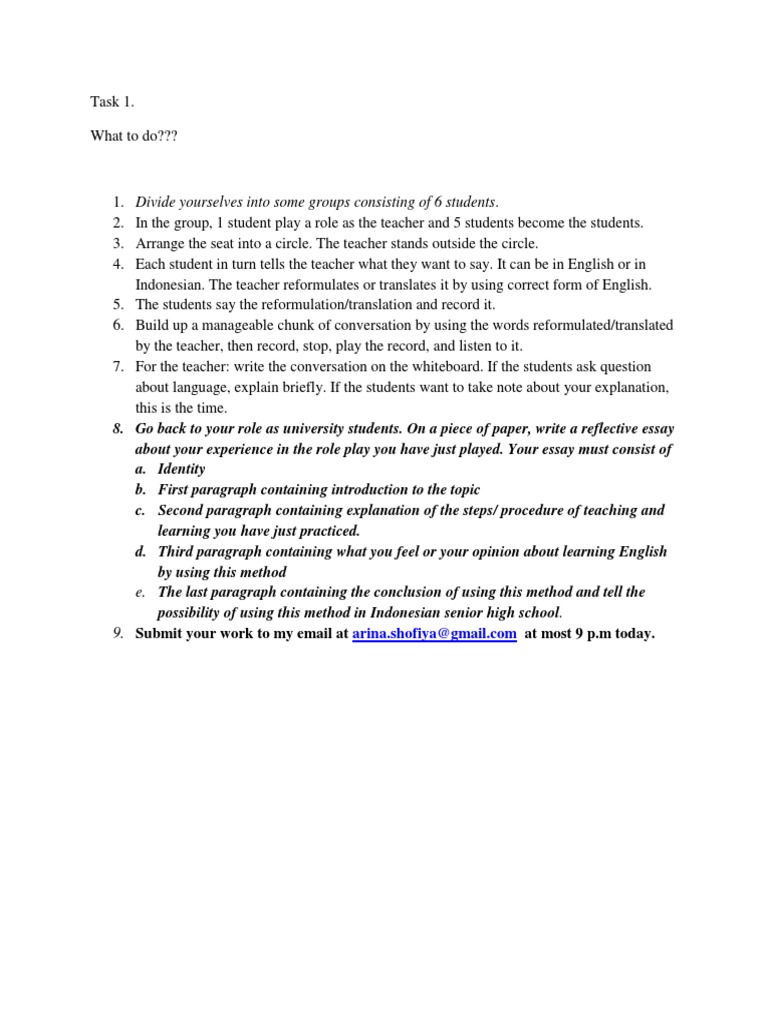 9. Submit your work to my email at arina.shofiya@gmail.com at most 9 p.m today.