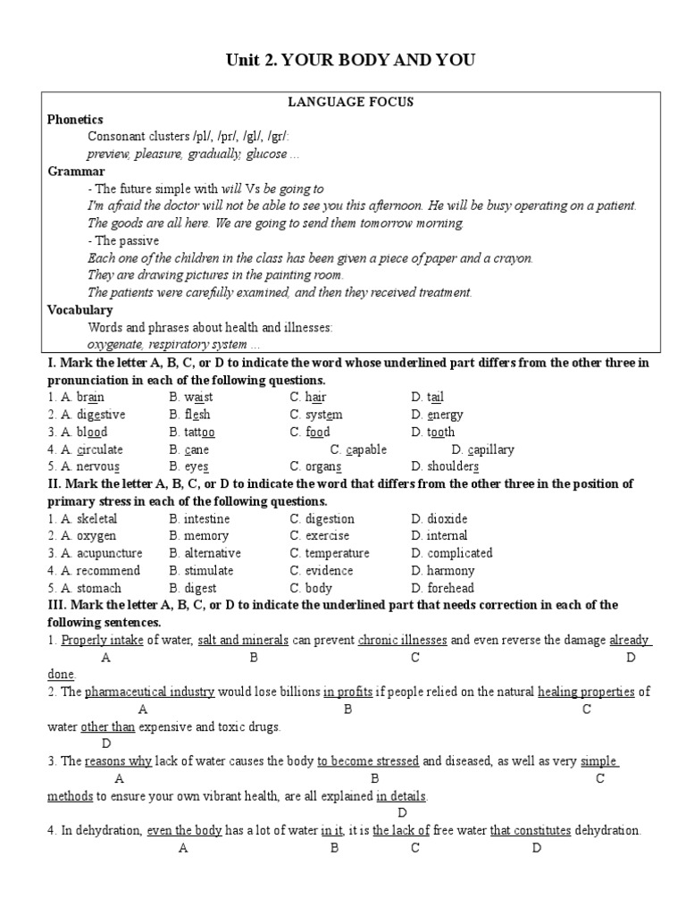 IX. Read the following passage and mark the letter A, B, C, or D to indicate the correct answer to each of