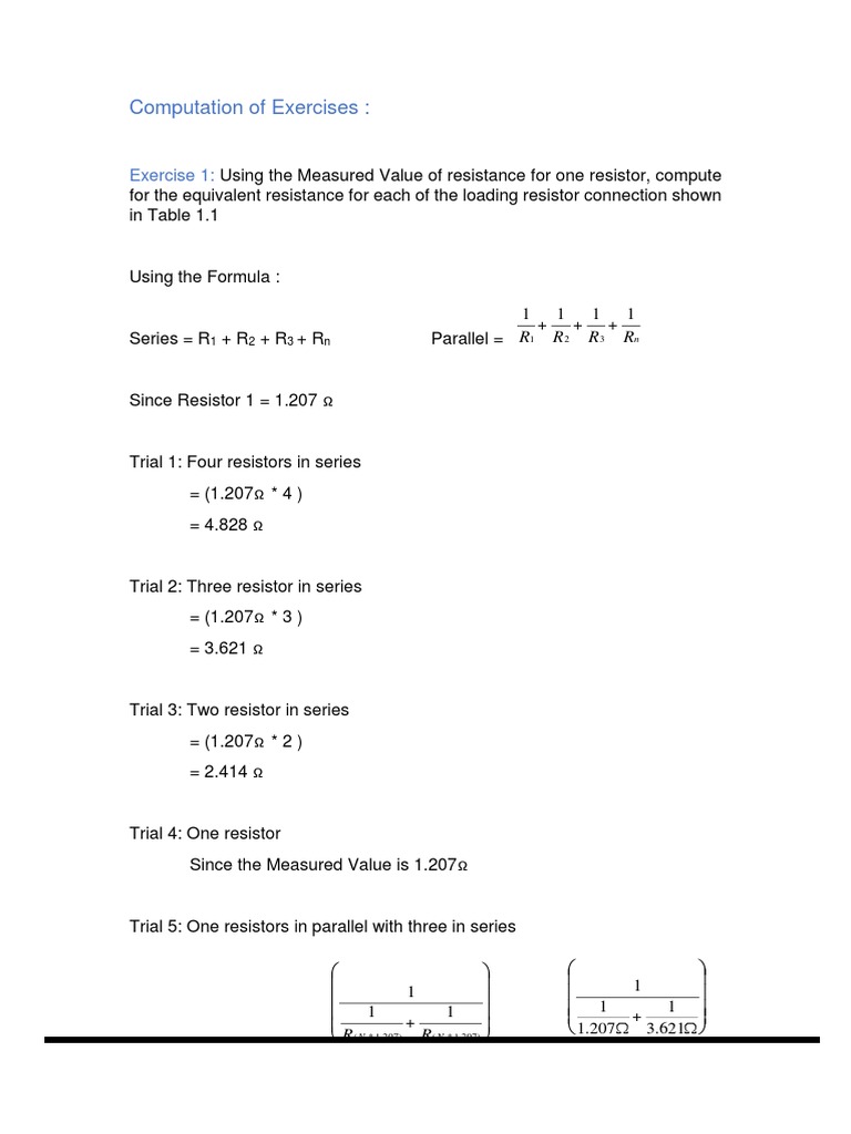 Exercise 1: Using the Measured Value of resistance for one resistor, compute