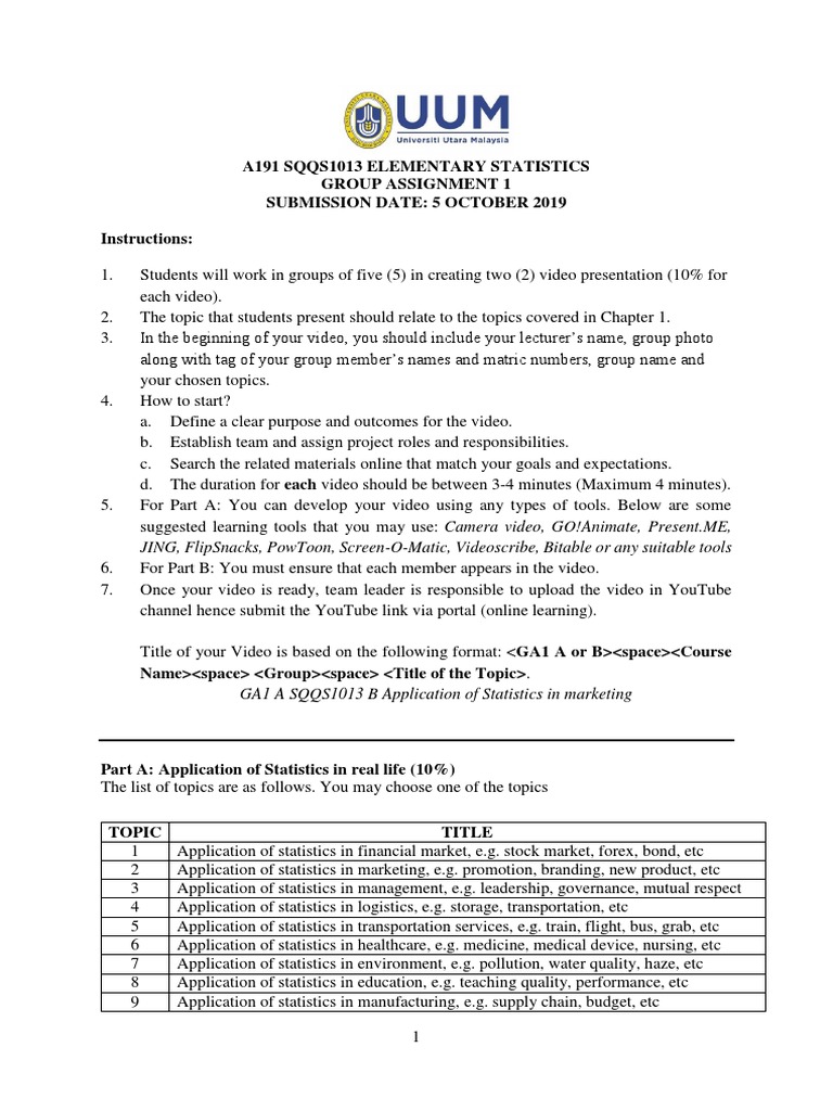 A191 SQQS1013 ELEMENTARY STATISTICS