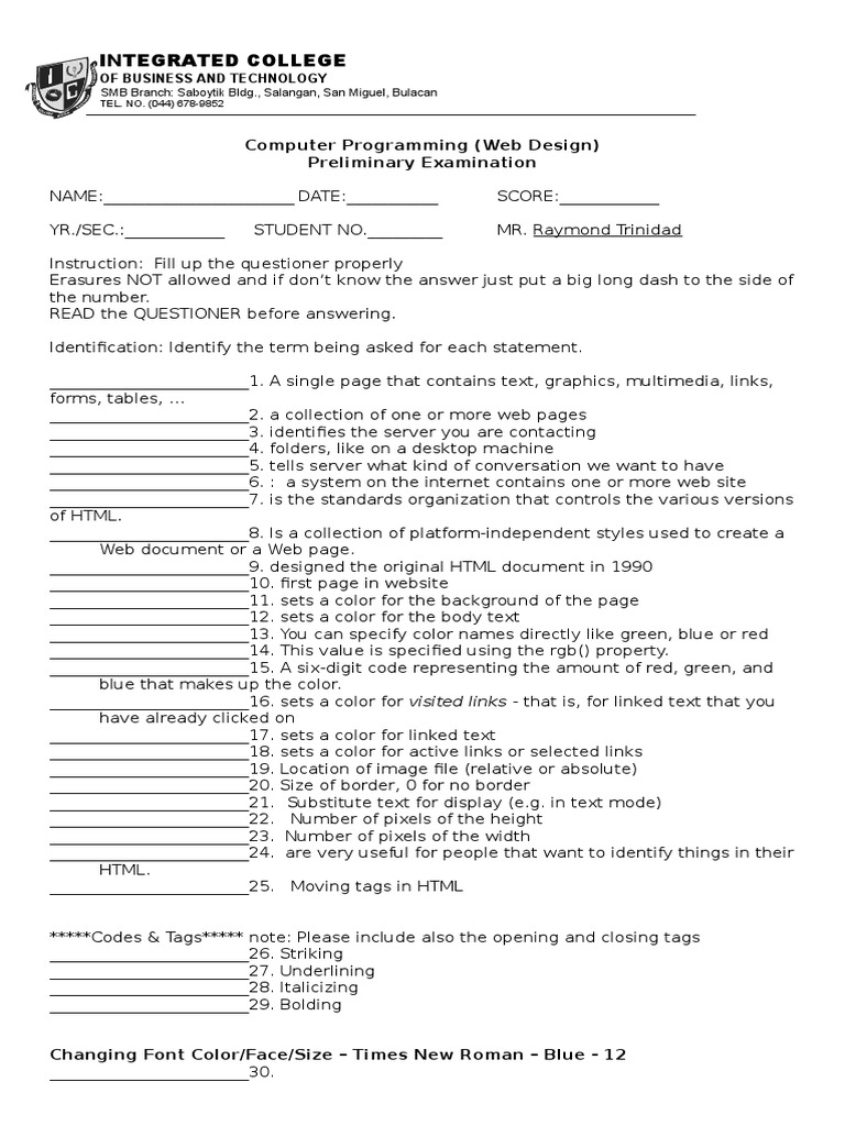 YR./SEC.:____________ STUDENT NO._________ MR. Raymond Trinidad