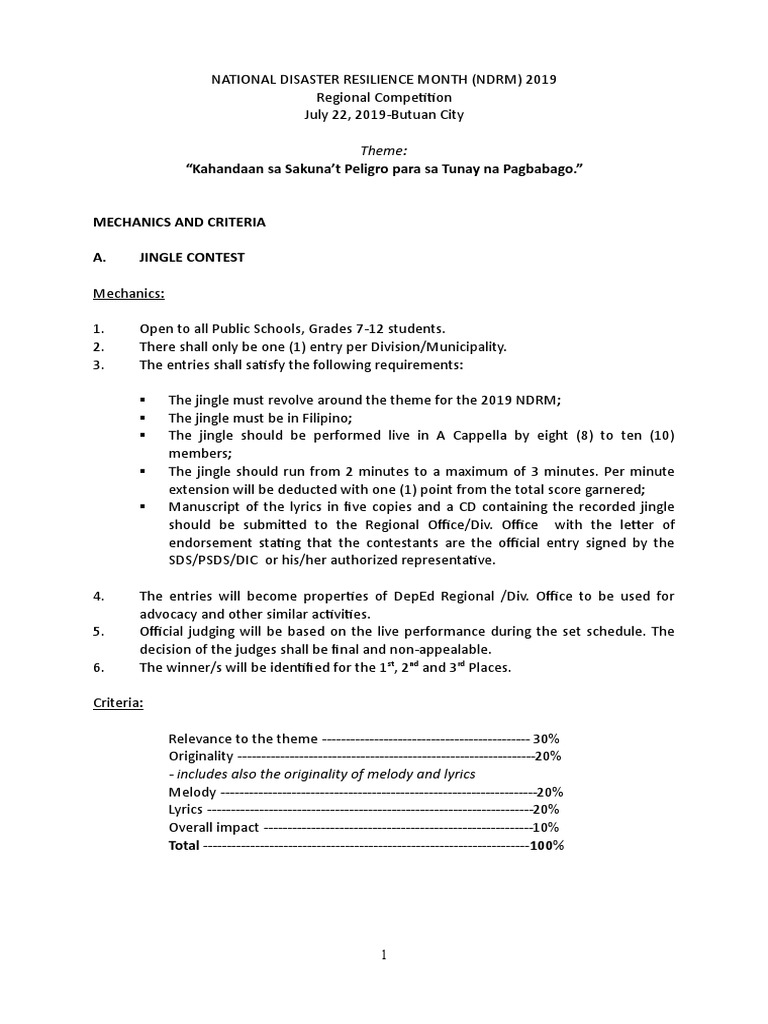 The jingle must revolve around the theme for the 2019 NDRM;