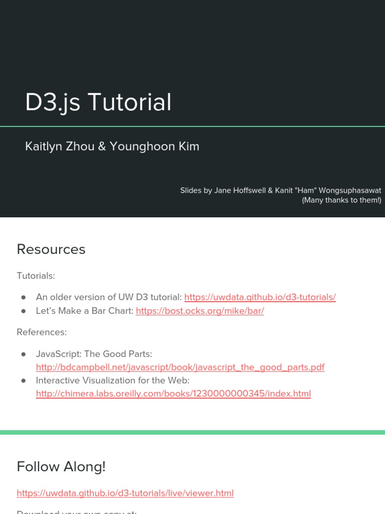 ● An older version of UW D3 tutorial: https://uwdata.github.io/d3-tutorials/