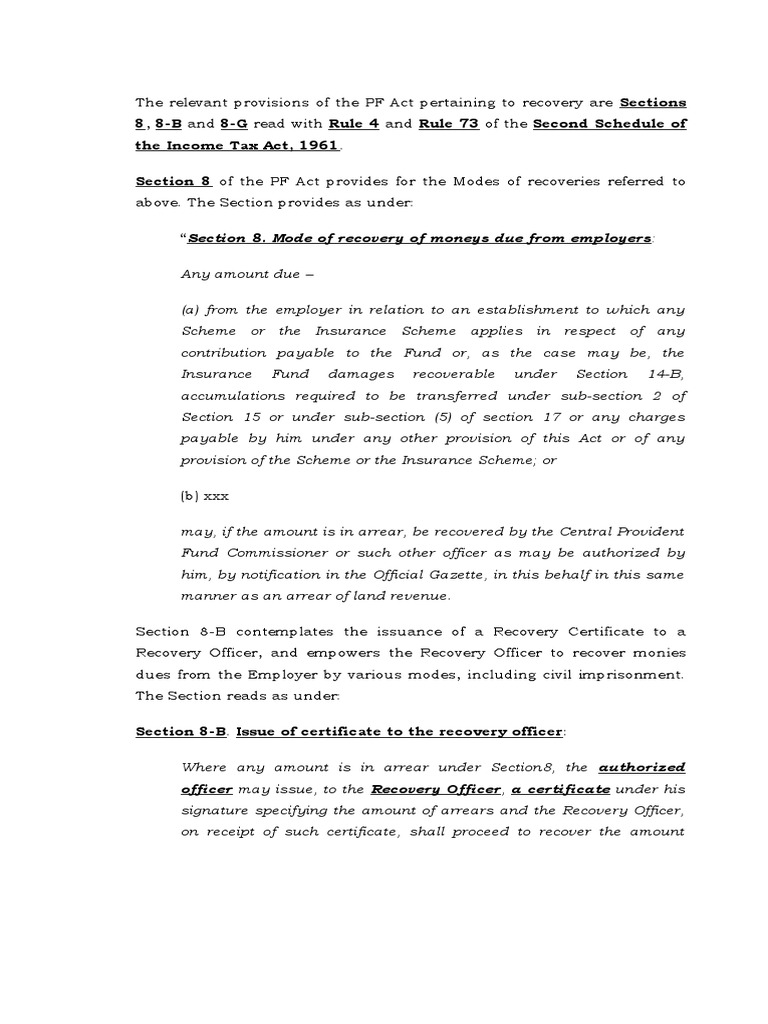 The relevant provisions of the PF Act pertaining to recovery are Sections