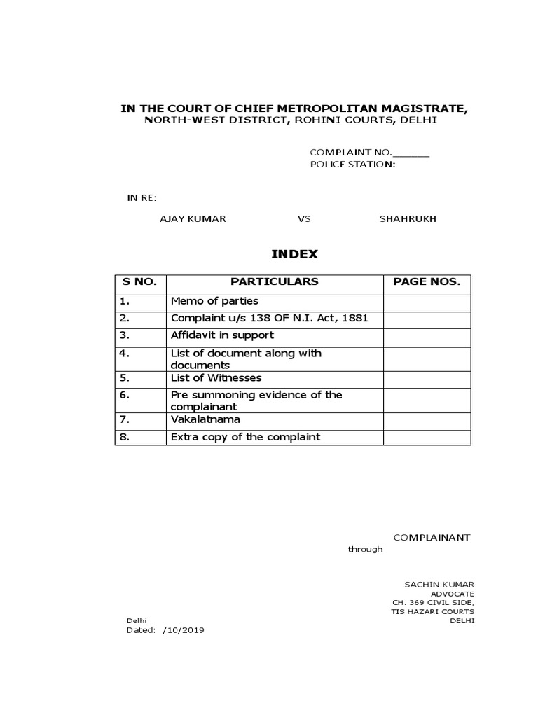 2. Complaint u/s 138 OF N.I. Act, 1881