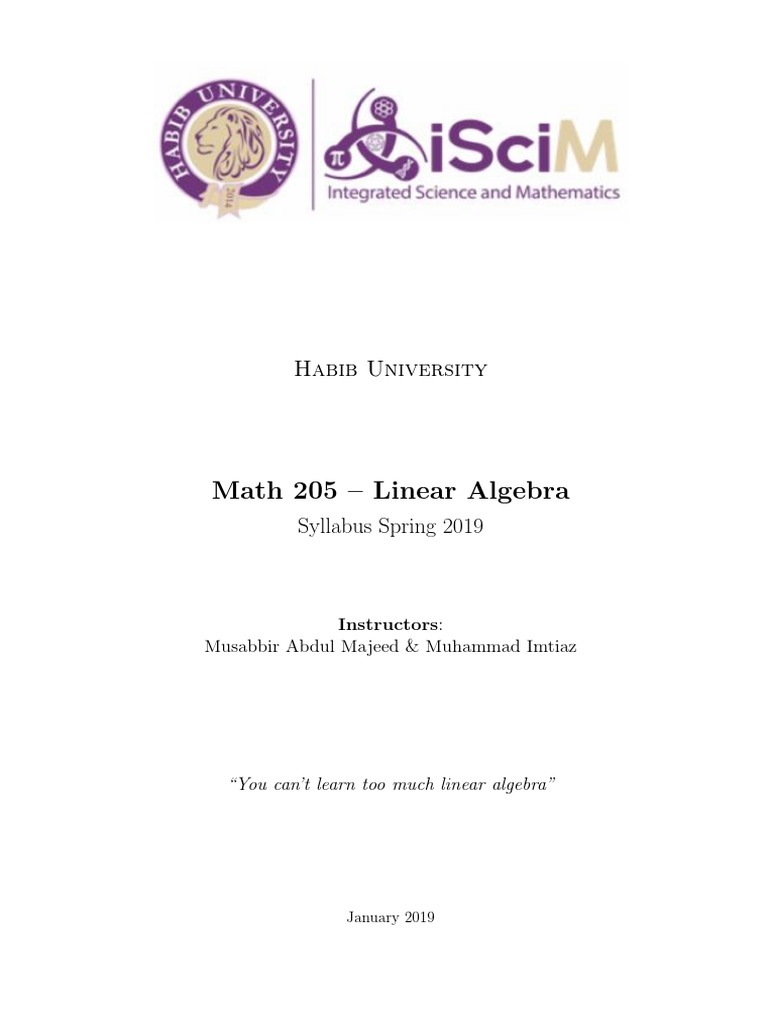This course aims to develop an appreciation of the basic concepts and problems of linear algebra and its appli-