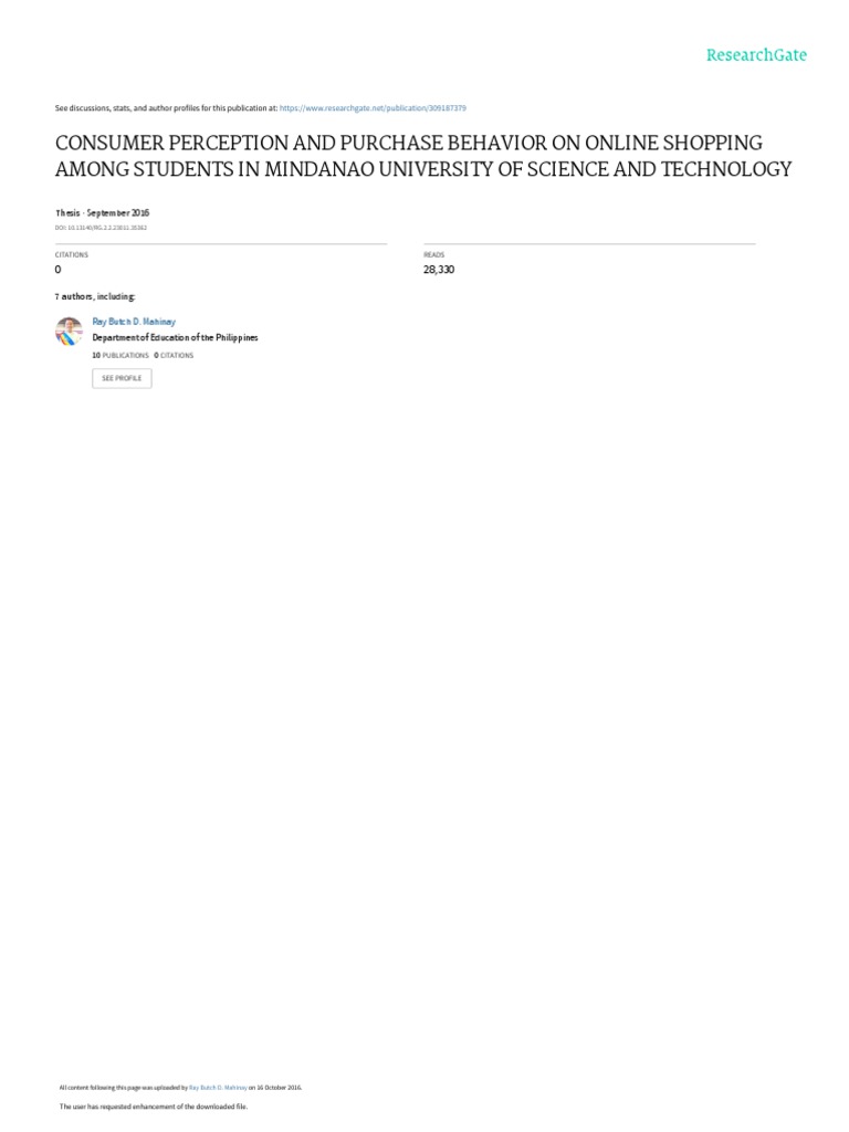consumer’s perception and their purchase behavior in online shopping. Localizing this scenario,