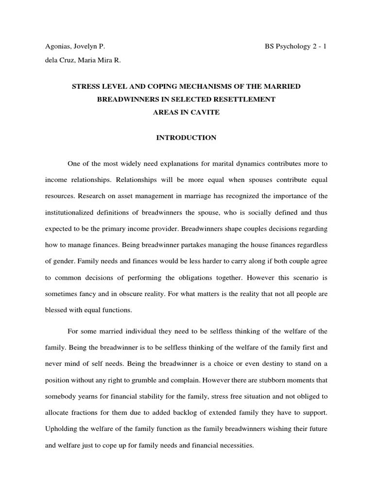 STRESS LEVEL AND COPING MECHANISMS OF THE MARRIED