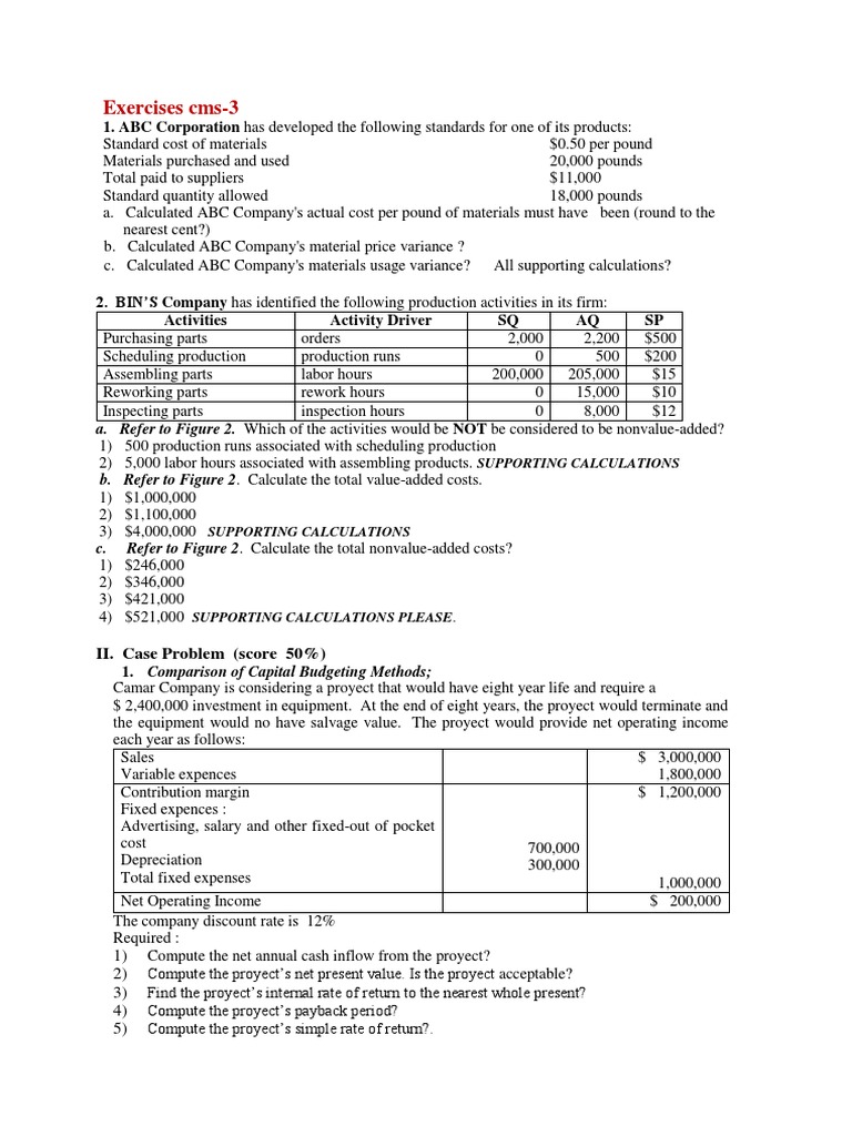 2) 5,000 labor hours associated with assembling products. SUPPORTING CALCULATIONS