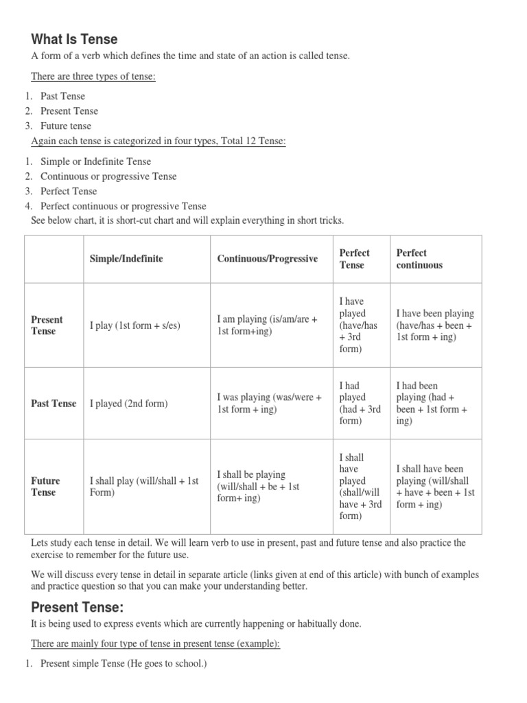 Lets study each tense in detail. We will learn verb to use in present, past and future tense and also practice the