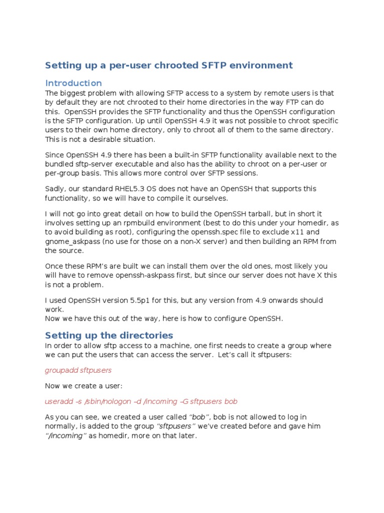 one, and set up the chroot environment for the sftpusers group. X11 and TCP