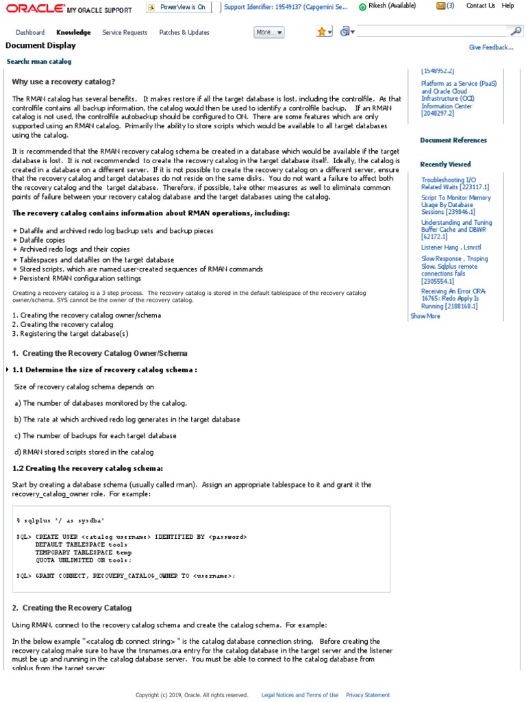 1. Creating the recovery catalog owner/schema Show More