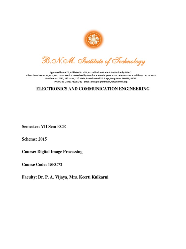 Ph: 91-80- 26711780/81/82 Email: principal@bnmit.in, www.bnmit.org