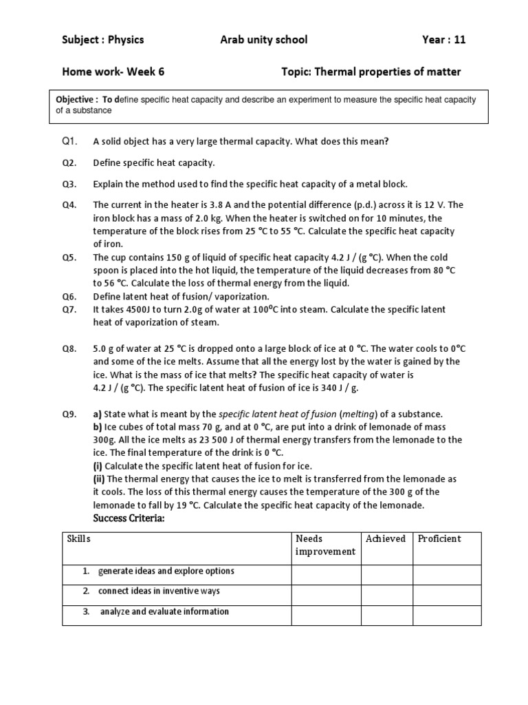 Objective : To define specific heat capacity and describe an experiment to measure the specific heat capacity