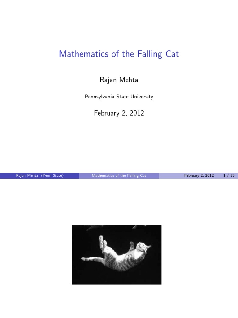 Rajan Mehta (Penn State) Mathematics of the Falling Cat February 2, 2012 1 / 13