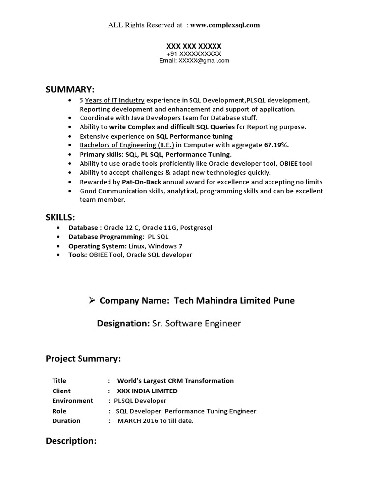 5 Years of IT Industry experience in SQL Development,PLSQL development,