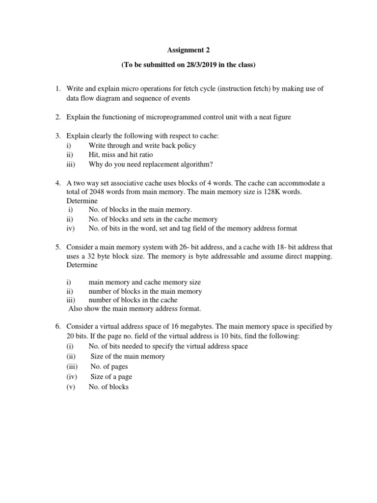 6. Consider a virtual address space of 16 megabytes. The main memory space is specified by