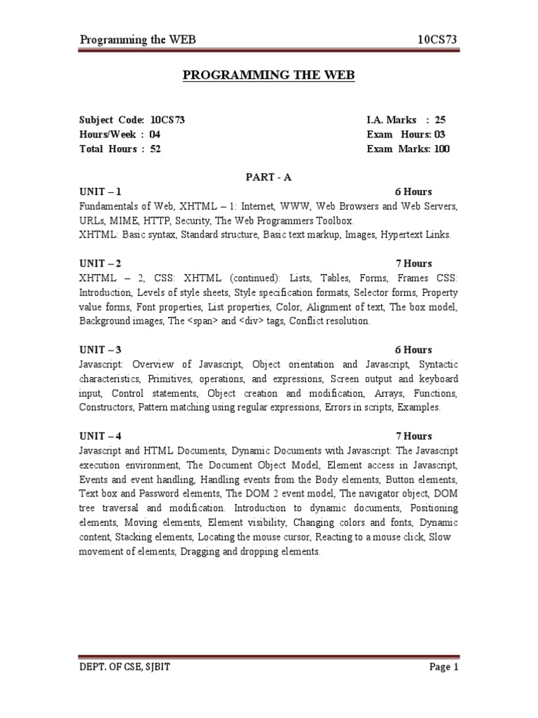 Syllabus: UNIT - 1 Fundamentals of Web, XHTML – 1