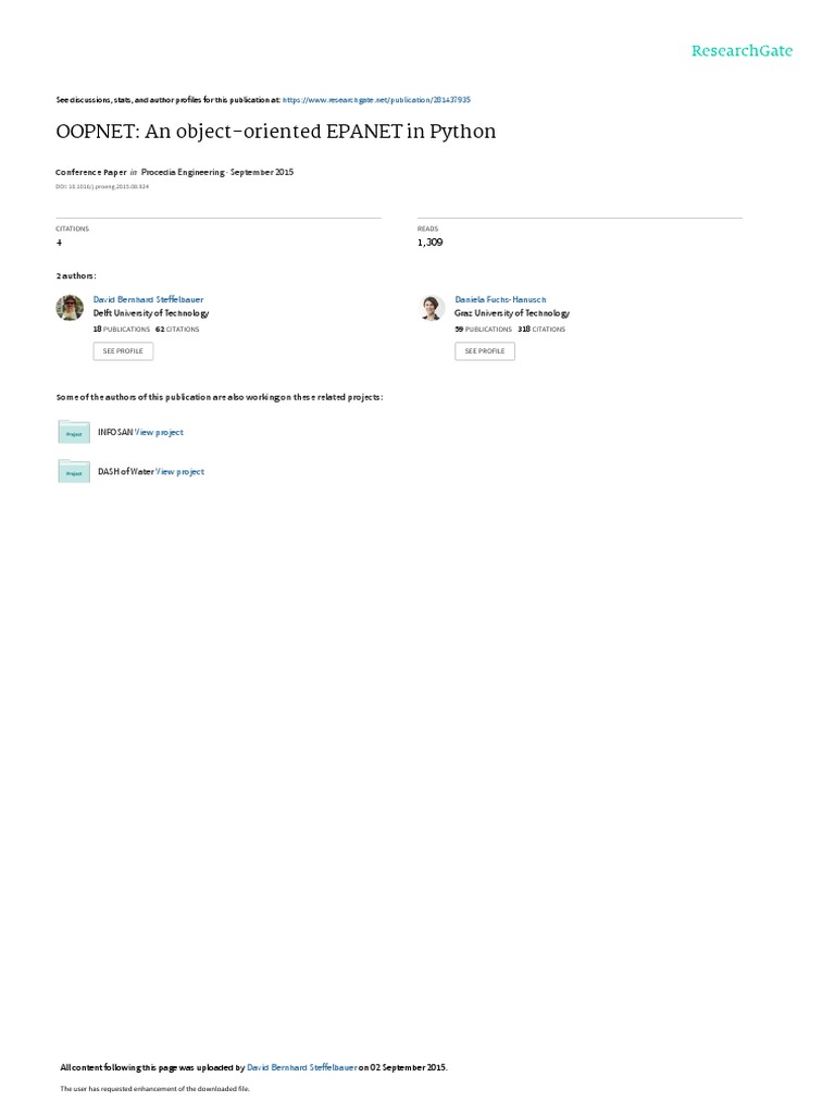 oriented way. We introduce a Python based object-oriented EPANET (OOPNET) with the purpose to address water engineers