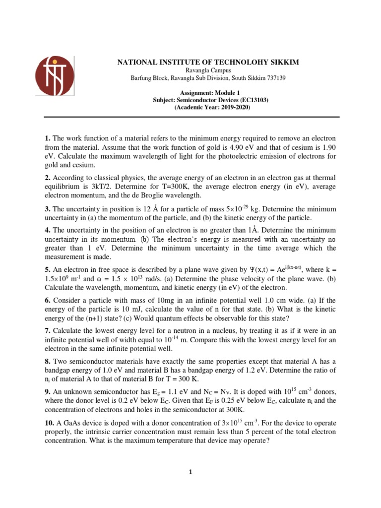 Subject: Semiconductor Devices (EC13103)