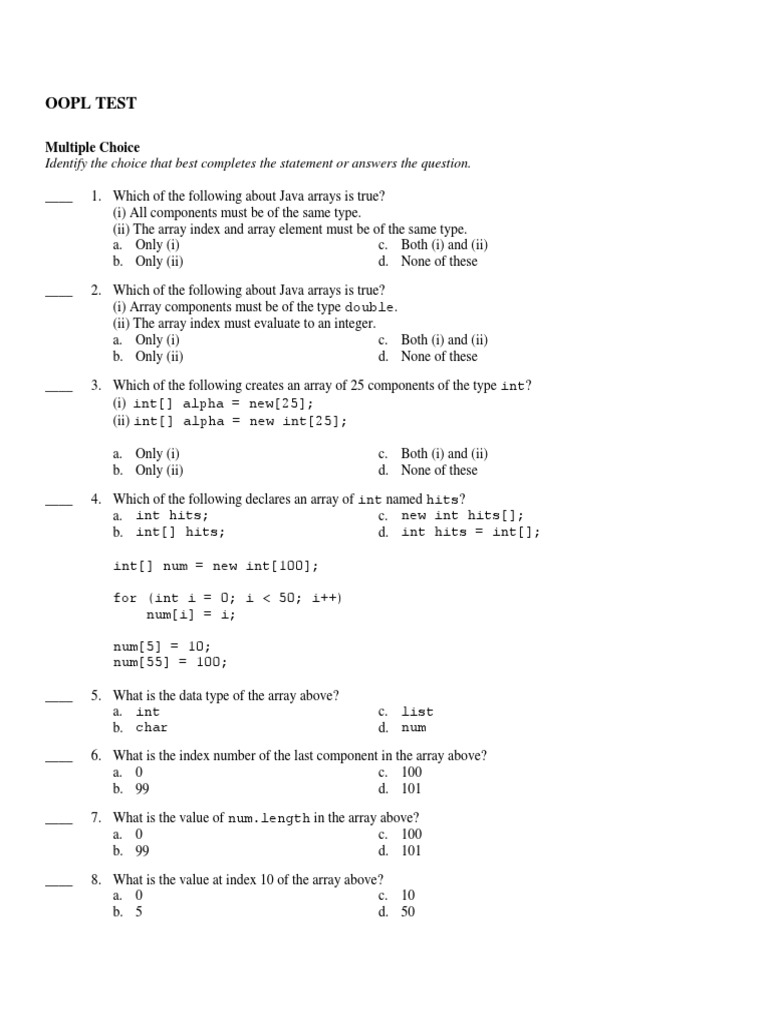 ____ 36. Suppose alpha is an array of 50 components. Which of the following about alpha is true?