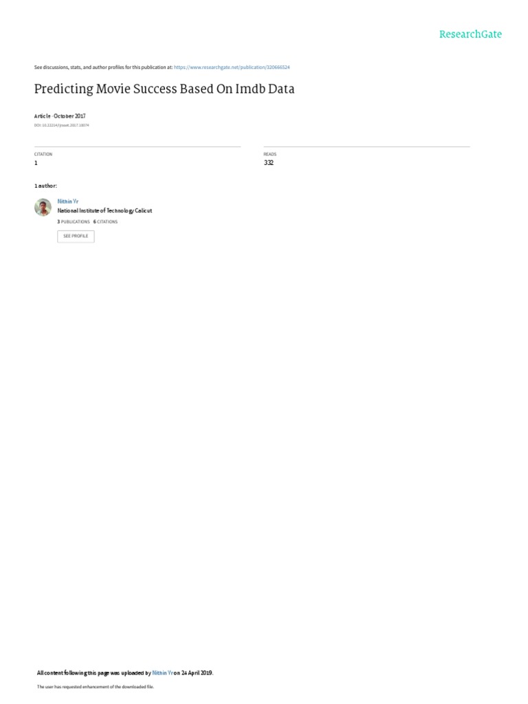 studies thus far have succeeded in suggesting a model good enough to be used in the industry. In this study, we attempt to use IMDb