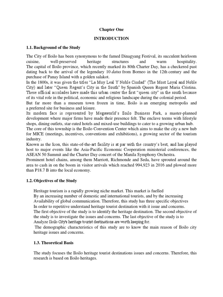The study is justified on the basis Iloilo is a province that’s rich in culture and history, and