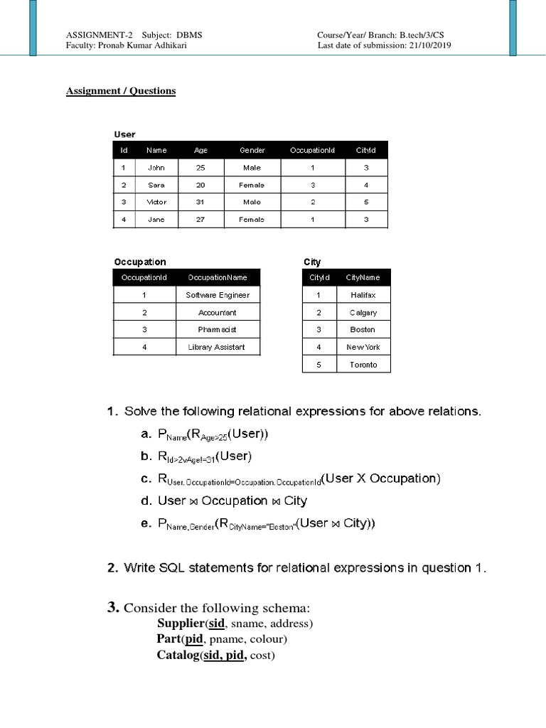 ASSIGNMENT-2 Subject: DBMS Course/Year/ Branch: B.tech/3/CS