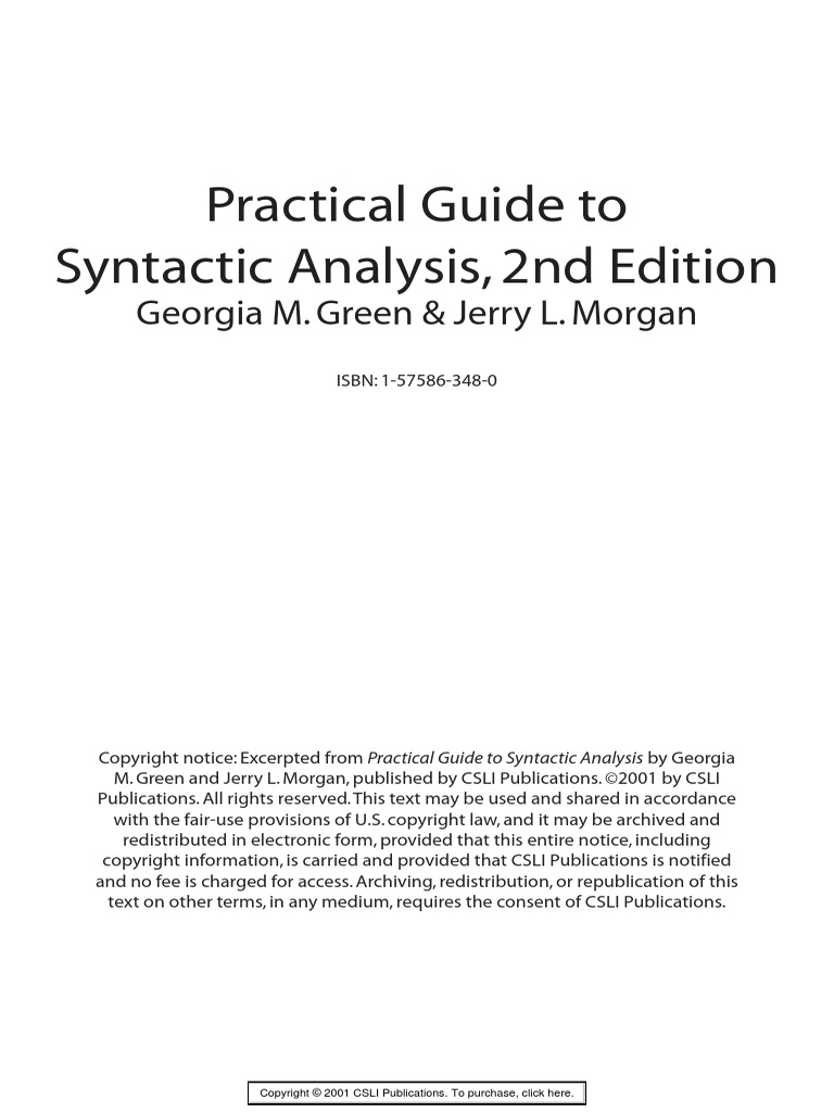 Copyright notice: Excerpted from Practical Guide to Syntactic Analysis by Georgia