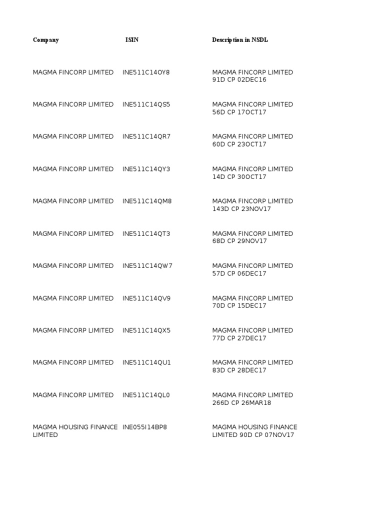 Company ISIN Description in NSDL