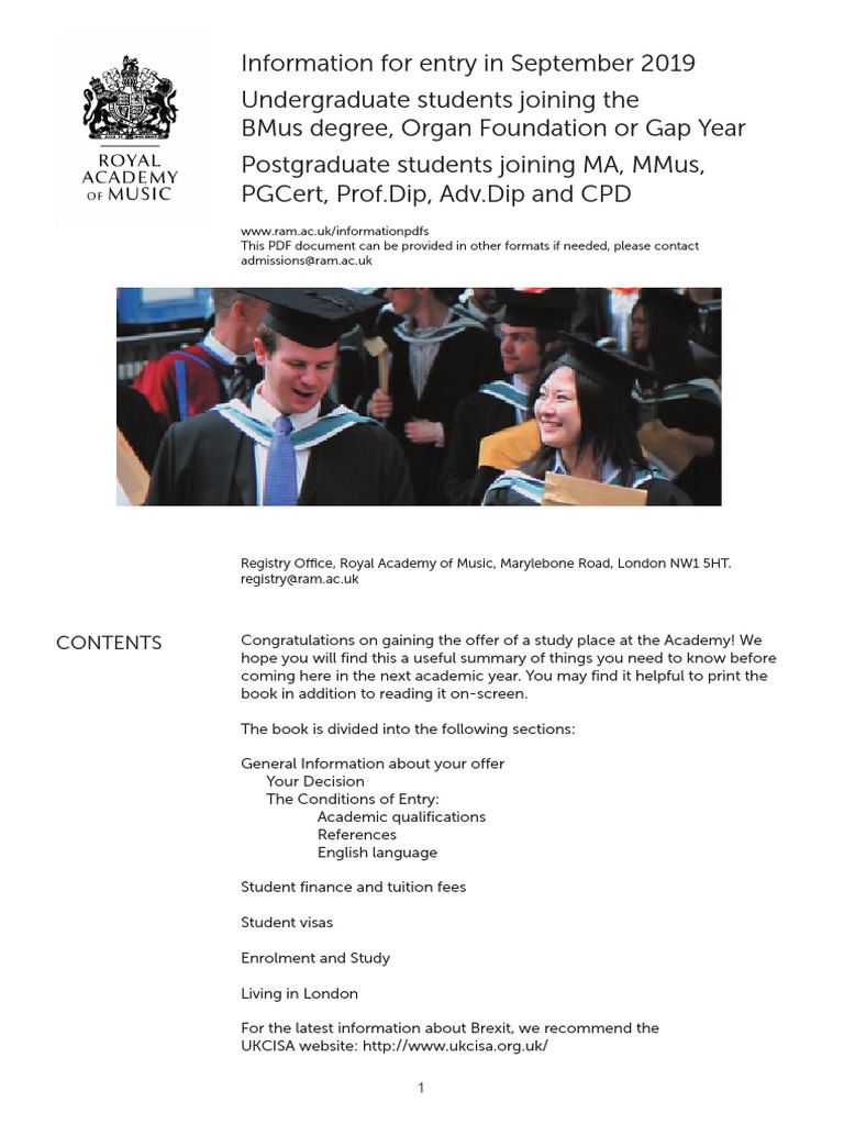 Information For Entry in September 2019 Undergraduate Students Joining The Bmus Degree, Organ Foundation or Gap Year Postgraduate Students Joining Ma, Mmus, Pgcert, Prof - Dip, Adv - Dip and CPD