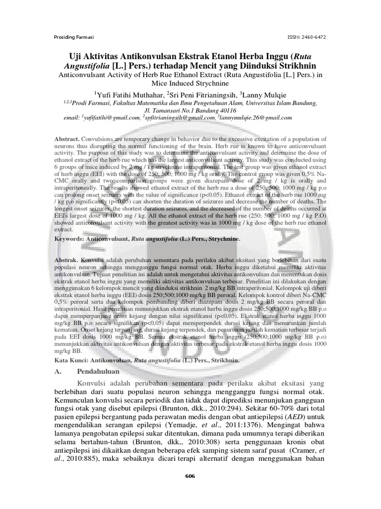Uji Aktivitas Antikonvulsan Ekstrak Etanol Herba...| 611